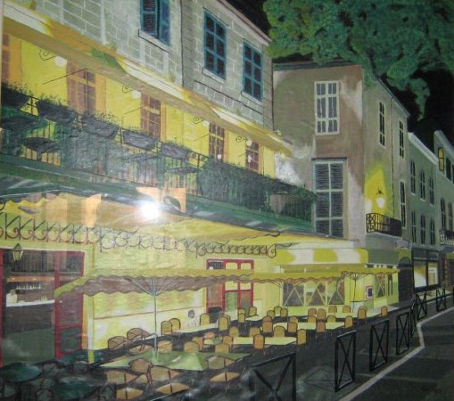 צויר לפני 18 שנה,בשנת 2001 , עבודה בסגנון הריאליזם, המתארת את בית הקפה הפריזאי בלילה המפורסם מציורו של ואן גוך, הציור הוא ציור של בית הקפה כפי שהוא היום ולא מזמנו של ואן גוך.
