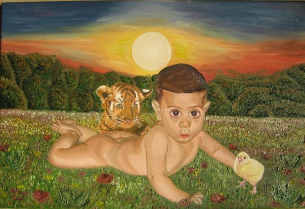 ציור המתאר את כל הסממנים להתחדשות בעיני הצייר: לידה, זריחה ופריחה.