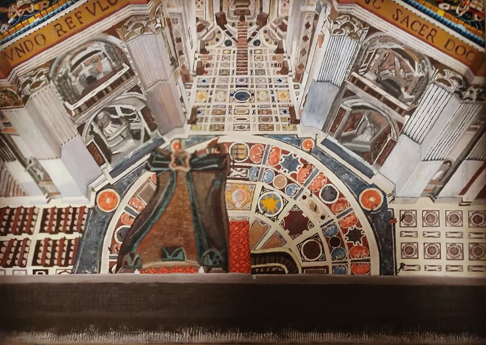 ציור ריאליסטי של כנסיית הותיקן המפורסמת ברומא, הציור הוא בעצם הנוף הנשקף מגג הכנסייה במרחק של מאות מטרים מריצפת הכנסייה.