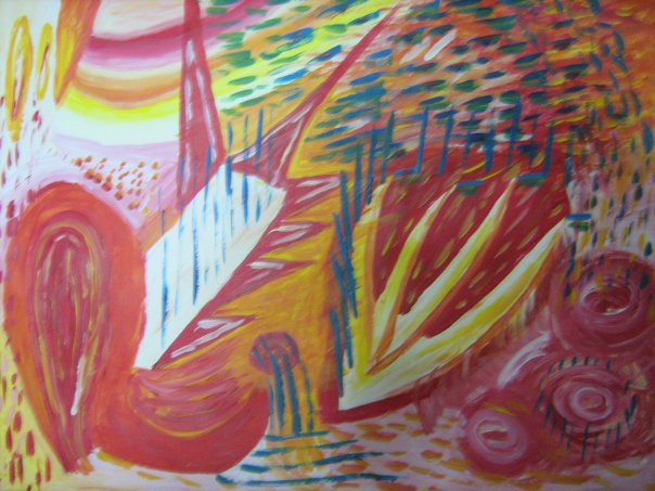 This painting was painted in abstract art without a clear object. This art mainly concentrates on artistic values such as color, composition, texture, etc. Everyone interprets this painting in a different way.